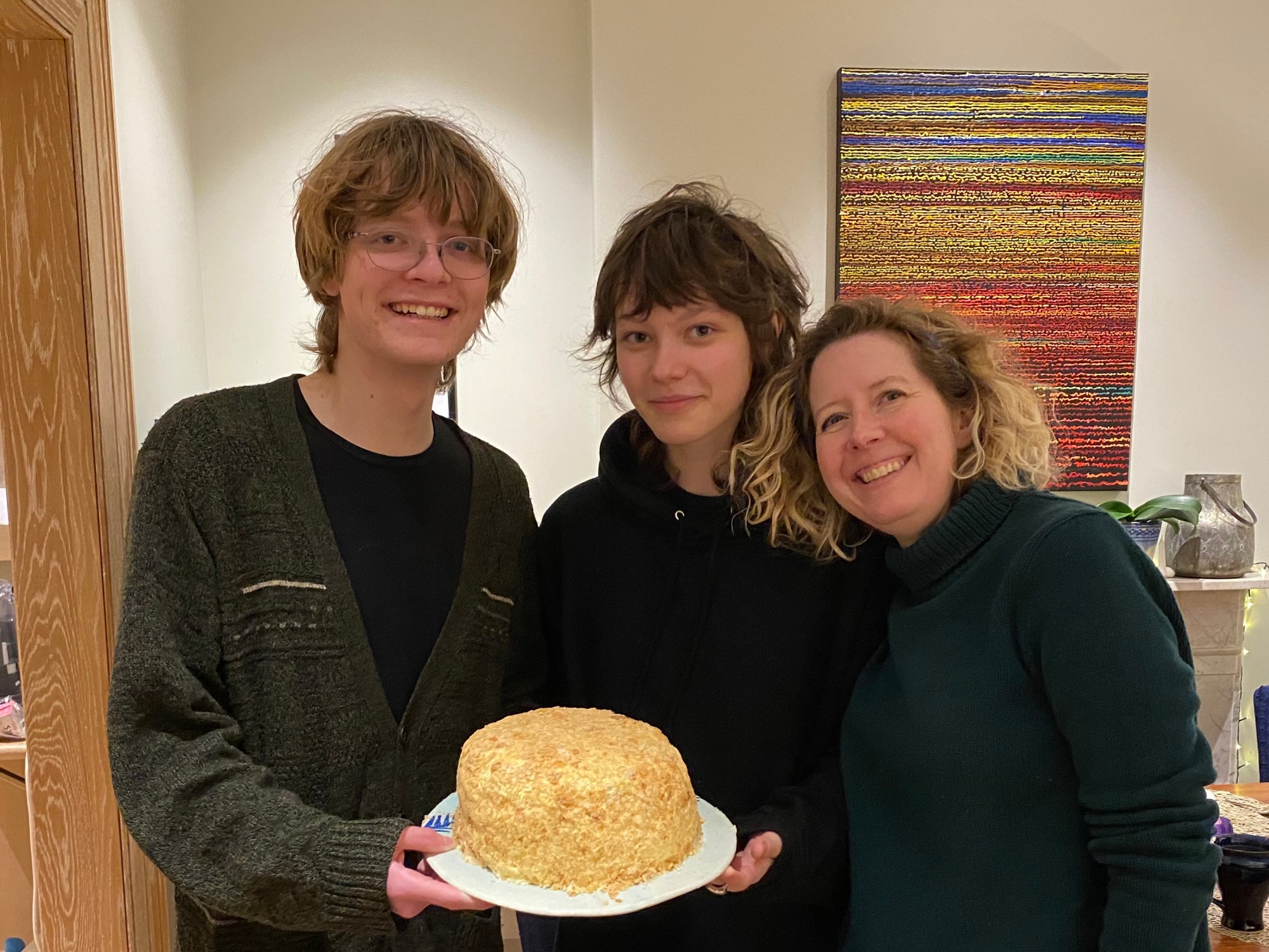 PS The photo today is of Aidan, Lisa, and our project cake–Lisa’s favourite Russian cake, unavailable in London–which was much less an act of baking than an act of relationship-ing.